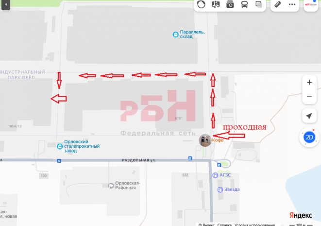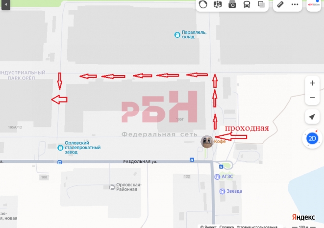 Склад площадью 1700 кв.м. на территории имущественного комплекса с обособленной территорией, расположенный по адресу: г. Орел, ул. Раздольная, д. 105. (территория завода «СЕВЕРСТАЛЬ»)