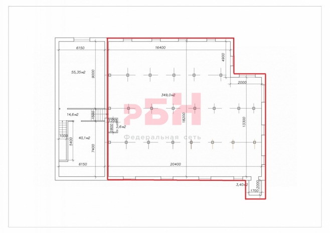 - состоит из большого помещения с родъёмником 355 кв.м. и двух смежных комнат;